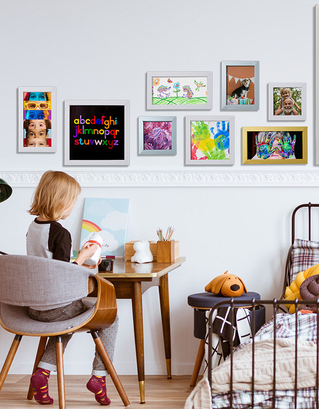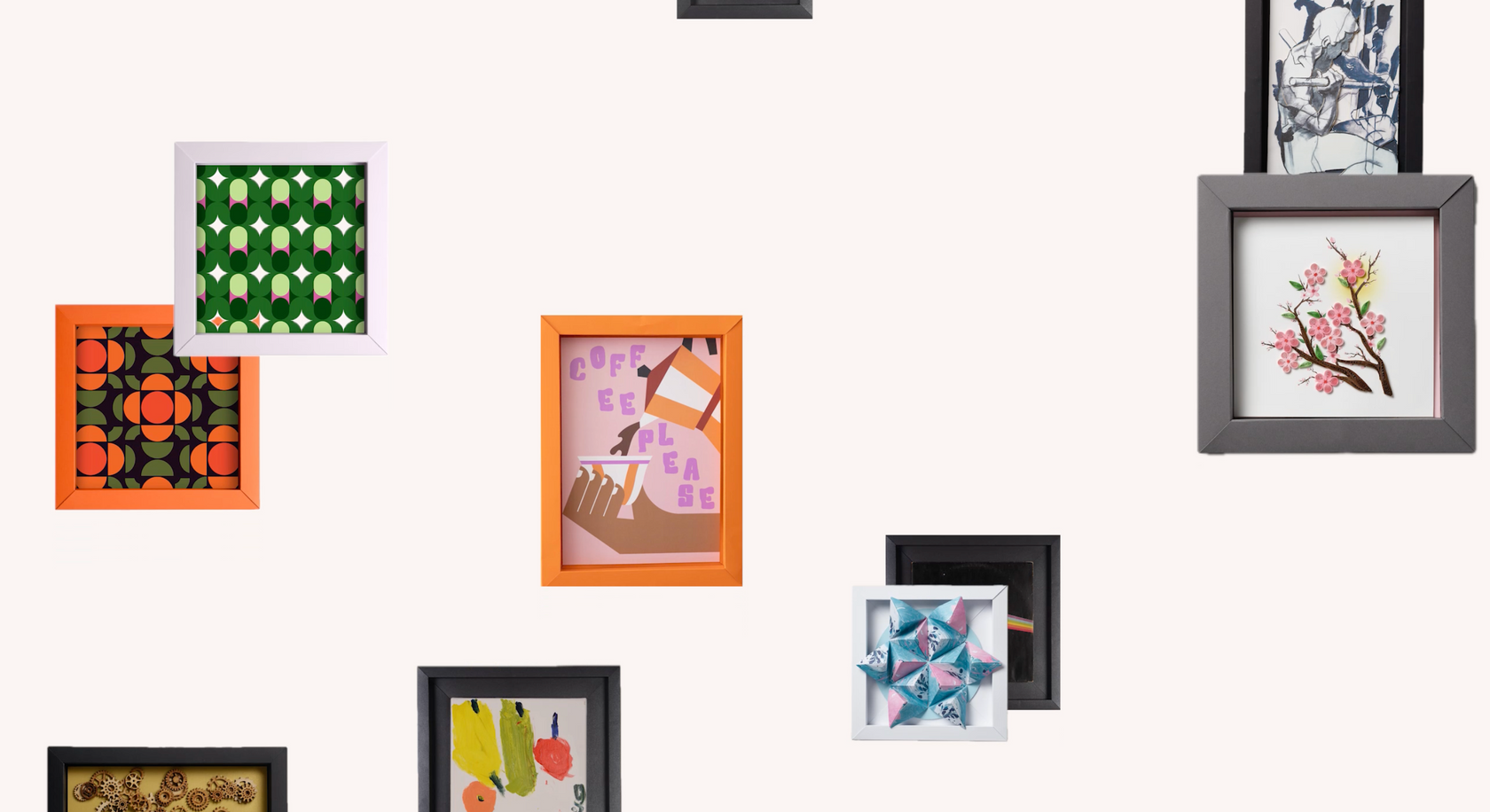 - Stick your artwork in place and your frame to the wall with the included peel & stick pads
