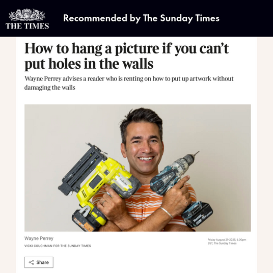 Widely known as The TV Carpenter, Wayne Perrey is a TV presenter and DIY expert featuring on ITV’s Love Your Weekend with Alan Titchmarsh and on BBC Morning Live. Wayne has a weekly DIY column on The Sunday Times Home section where he shares tips and tricks.